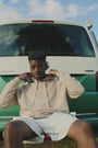 The TWOTWO hoodie is made from heavyweight fabric with an unbrushed loop-back knit. The finish provides a rich and heavy drape on the outside with a soft and plush feel on the inside.